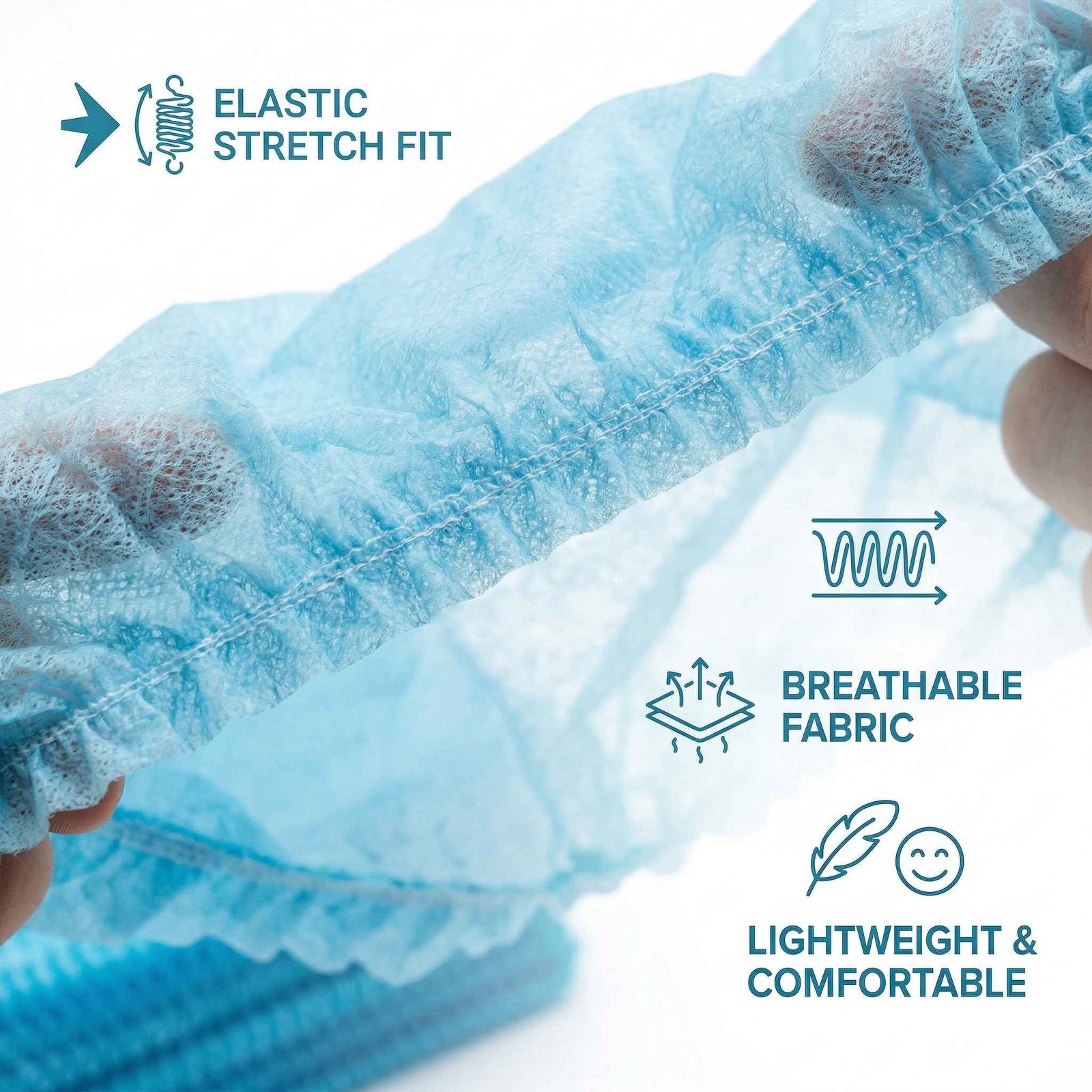 The elastic band provides a secure fit for different head sizes without causing discomfort. It helps maintain hygiene by preventing hair from falling into food or work areas.