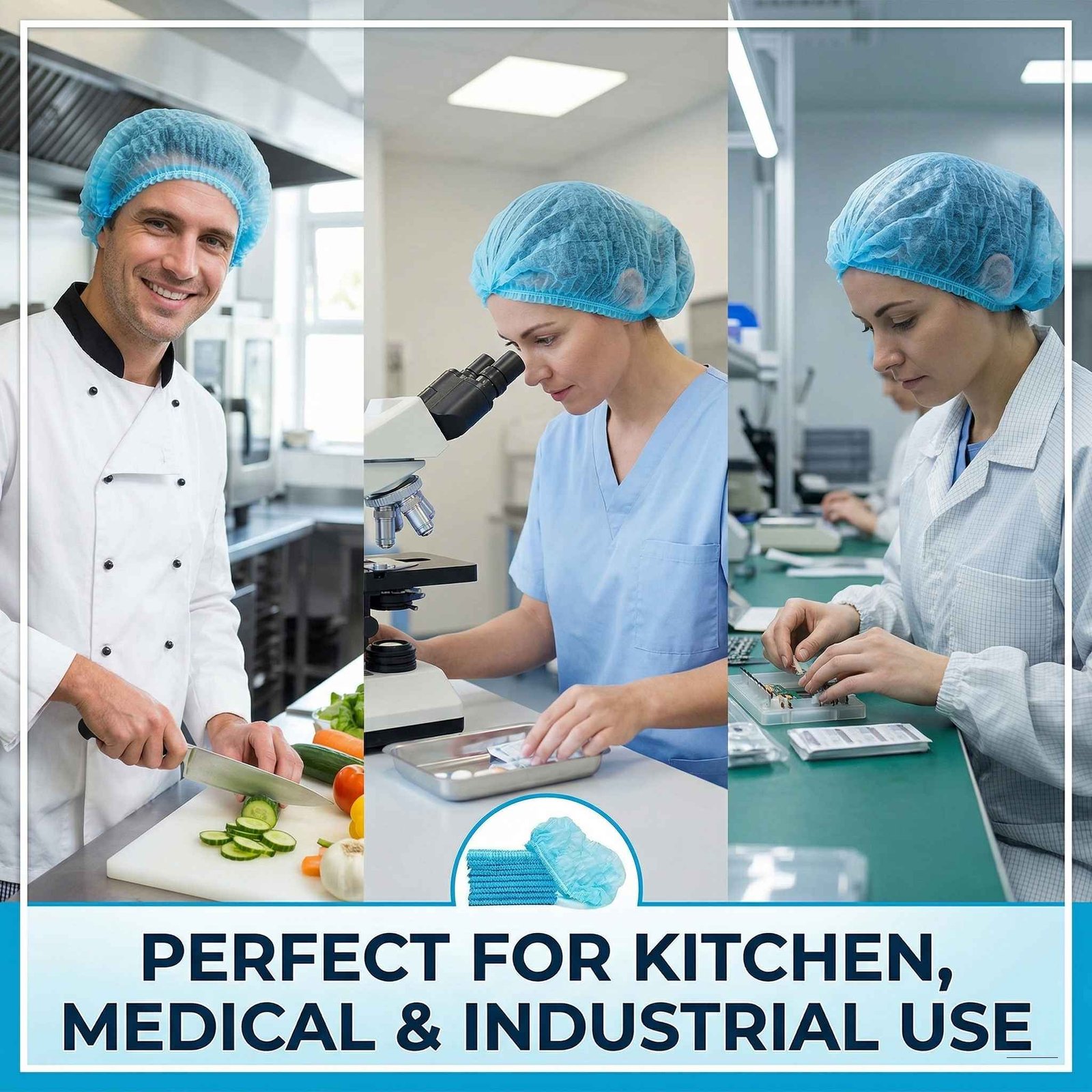 | Usage | Used to cover hair for hygiene and safety |